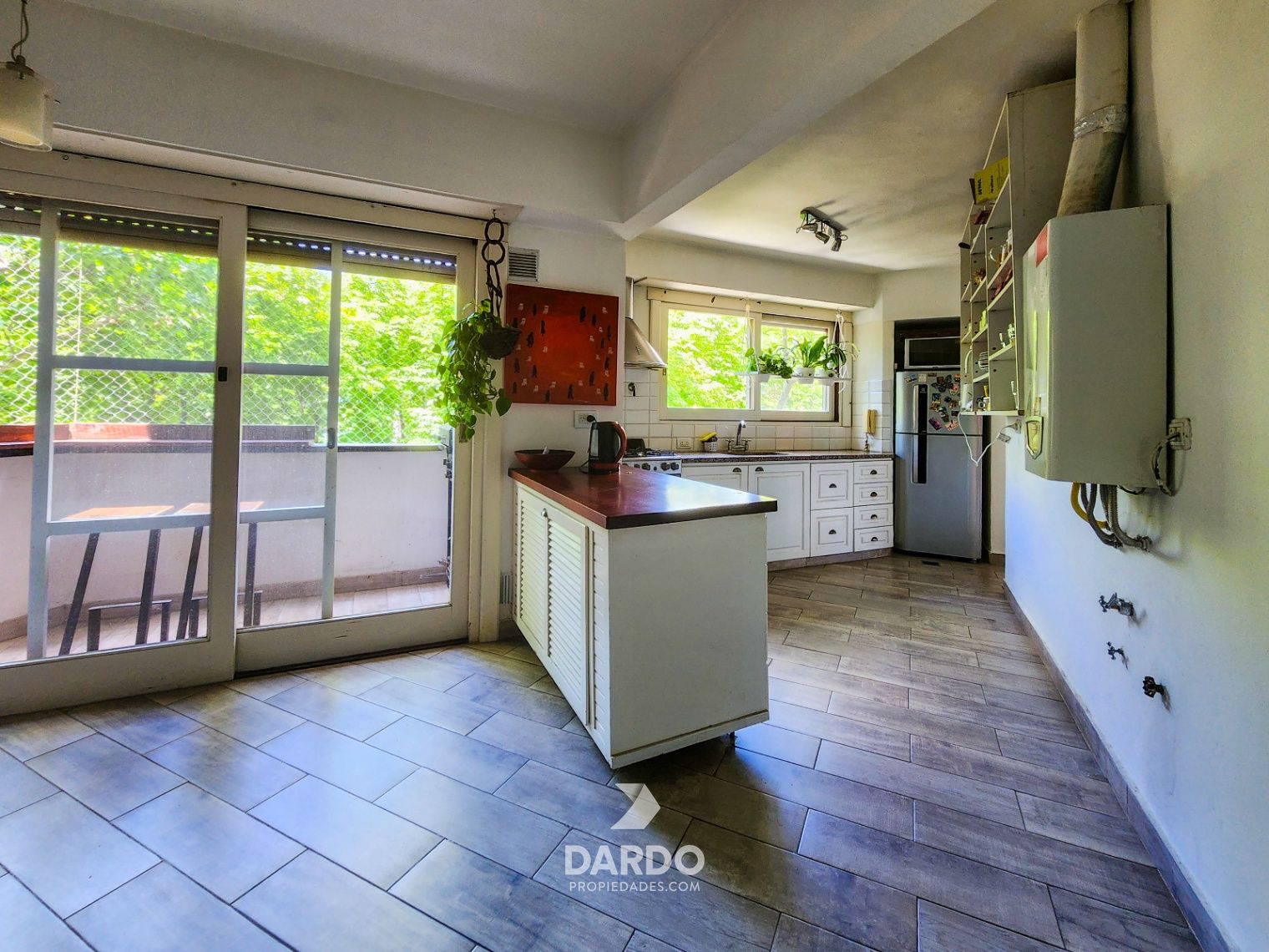Cuenta con un living comedor amplio con balcón corrido a la calle, cocina con barra desayunadora semiintegrada al comedor, con salida a segundo balcón con vista a la plaza, lavadero separado.